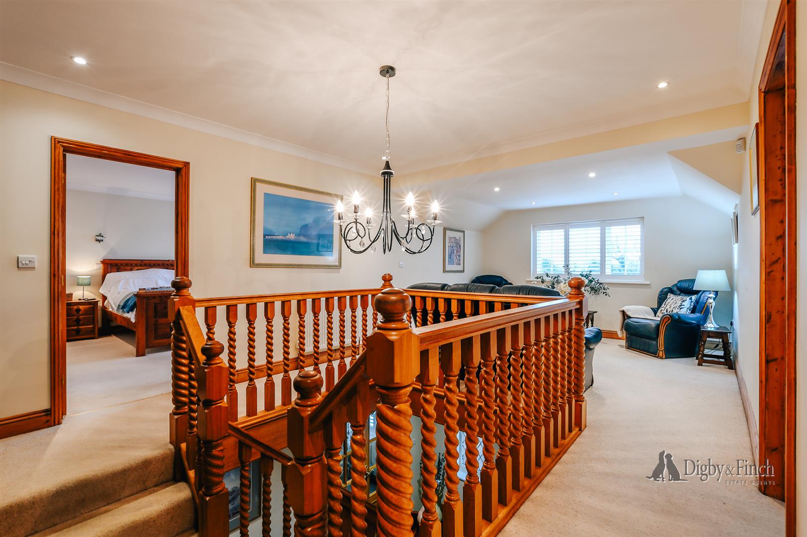 To the first floor, a generous galleried landing creates an impressive sense of space and currently serves as a seating or reading area. The property was originally designed with five bedrooms and this area could readily be reconfigured to create an additional bedroom if required. There are presently four well-proportioned bedrooms, all finished to a high standard.