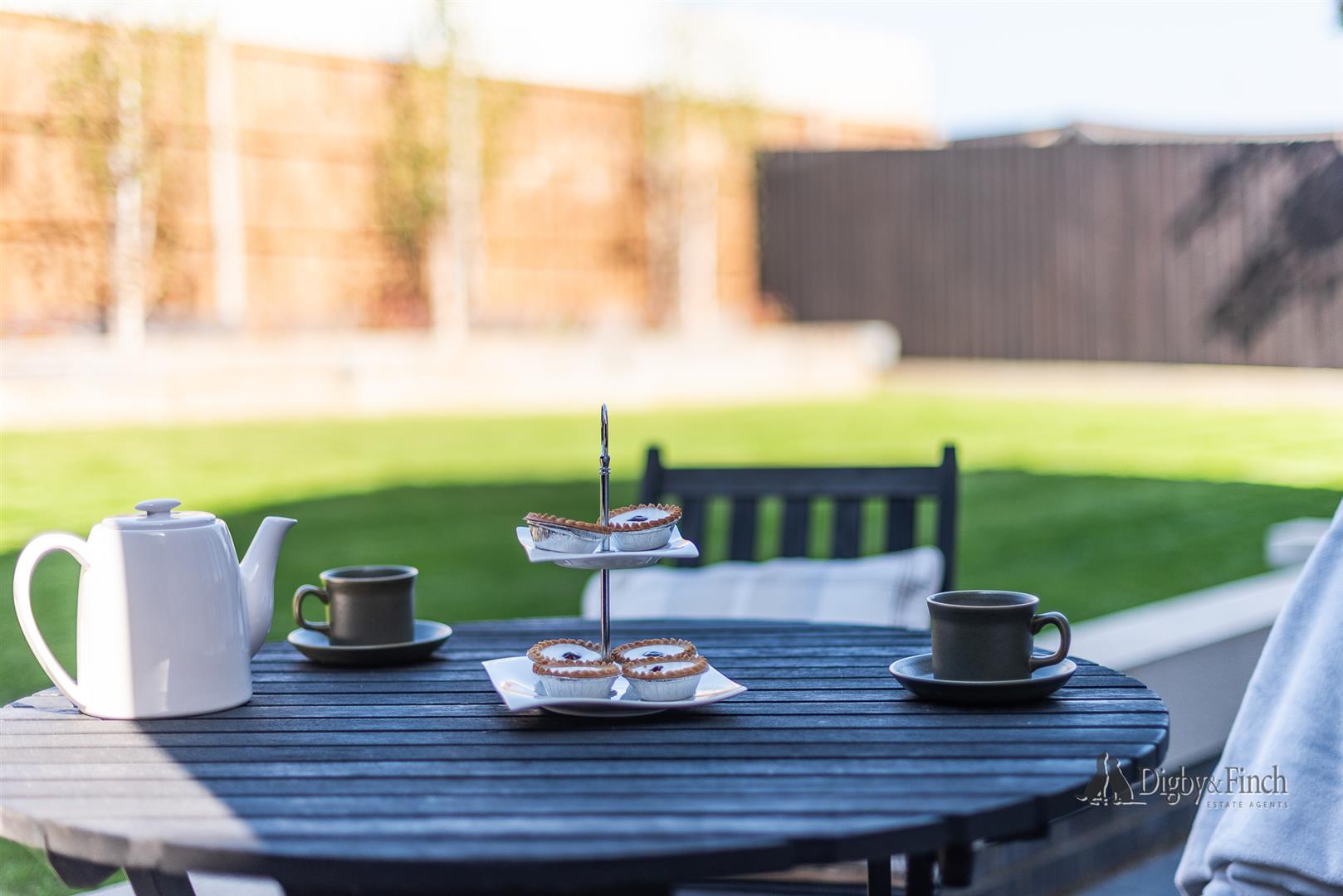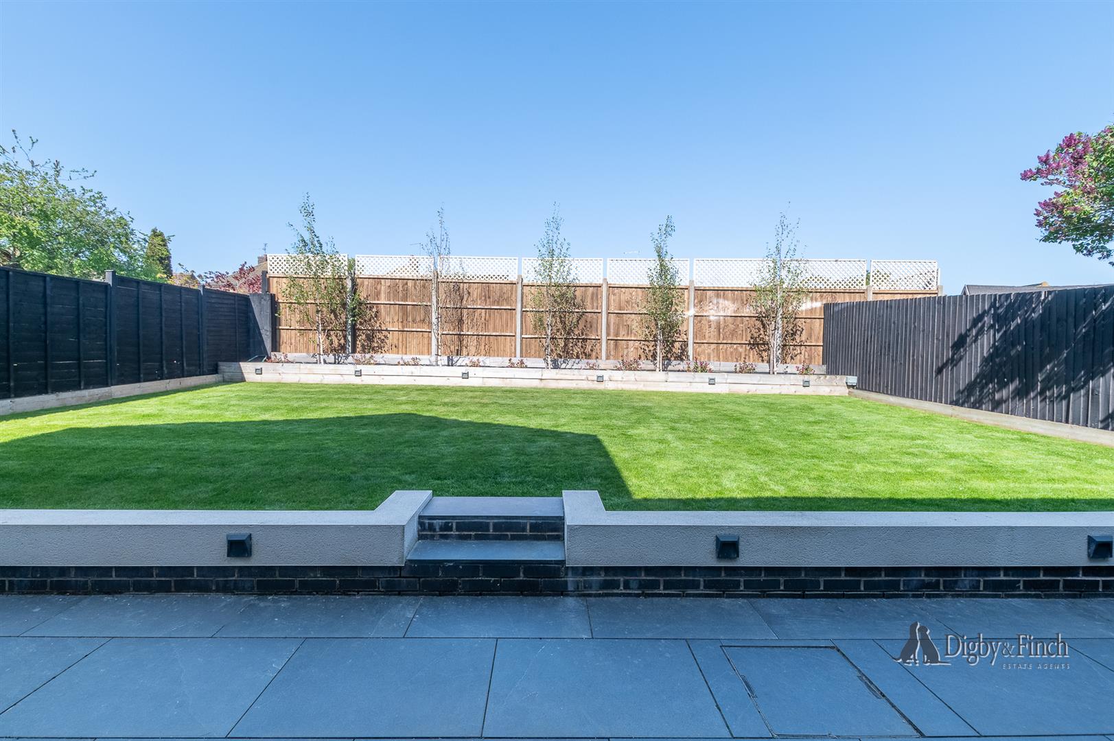 To the rear of the property is a stone terrace area, perfect for soft seating and outdoor entertaining beyond which is a neat lawn with raised beds.