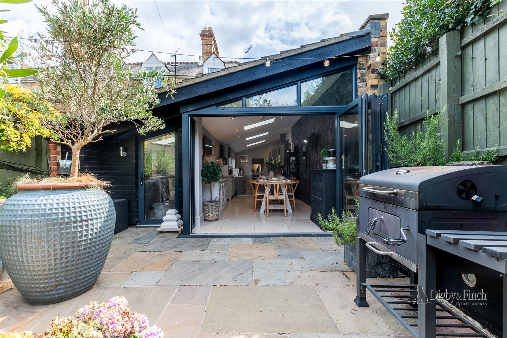At the heart of the property lies the Kitchen, Dining and Living Space—an exceptional open-plan environment designed for modern living. Sleek quartz worktops, contemporary cabinetry, Fisher & Paykal stainless steel fridge freezer and integrated appliances including 1 Neff single oven, a double oven and a 5 ring induction Hob combine sophistication with practicality. Bi-fold doors, Velux windows and glazed roof lights flood the room with natural light, creating a seamless connection between house and garden.