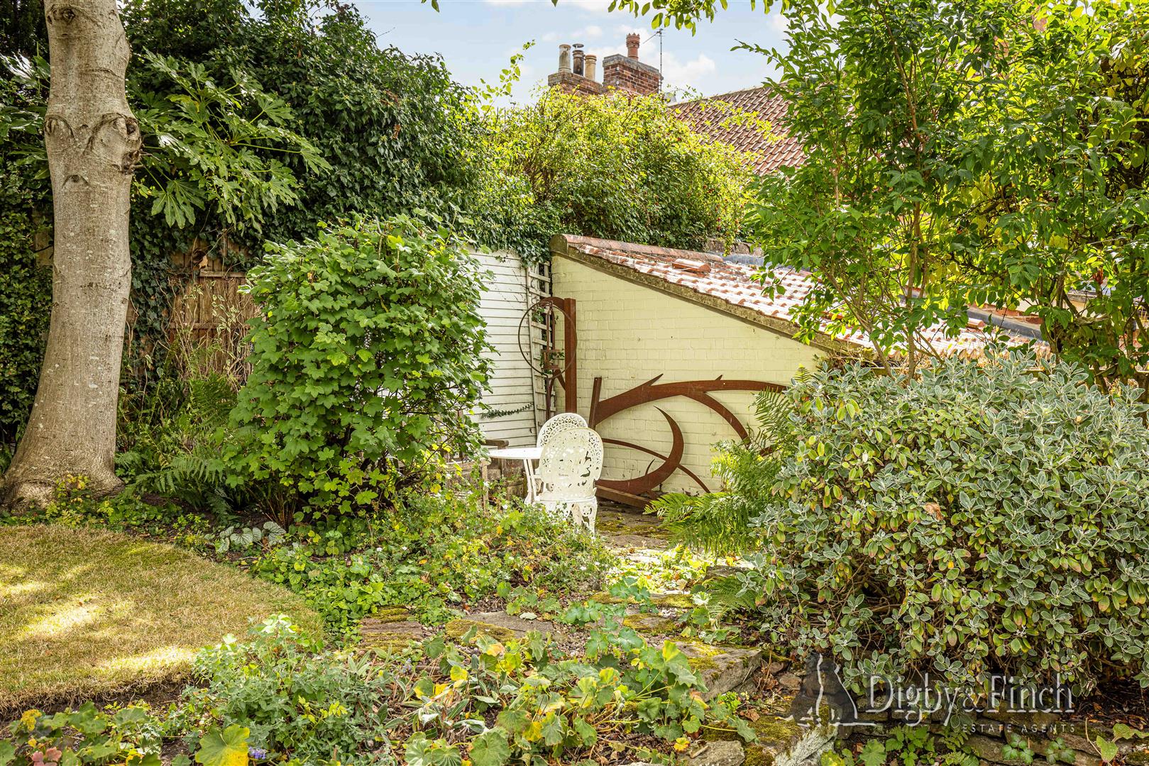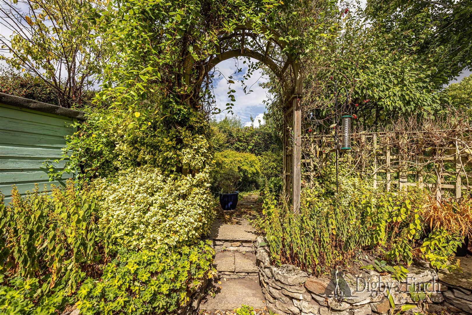 The rear garden is a true highlight, offering a series of thoughtfully landscaped spaces. Immediately outside the house lies a gravelled seating area with a summer house and access to a large store, attached to the study, providing excellent external storage. Steps rise through an arbour adorned with climbing rose and honeysuckle to a second level, where a mature Amelanchier and a viburnum pink dawn bondant form the centrepiece of a large bed. To one side lies a second, slabbed seating area beneath the shade of a magnificent white walnut tree. Beyond, the garden extends to two levels of lawn bordered by mature planting and well-stocked flower beds, with a recently renewed rear boundary fence completing this delightful outdoor space.
