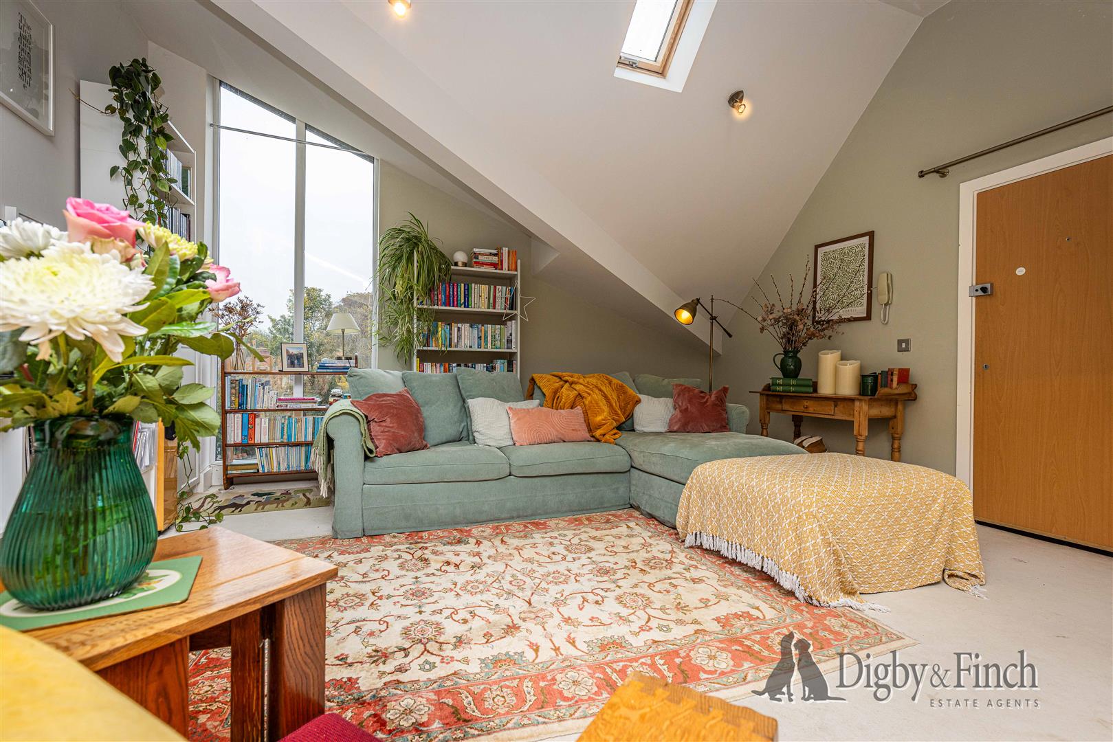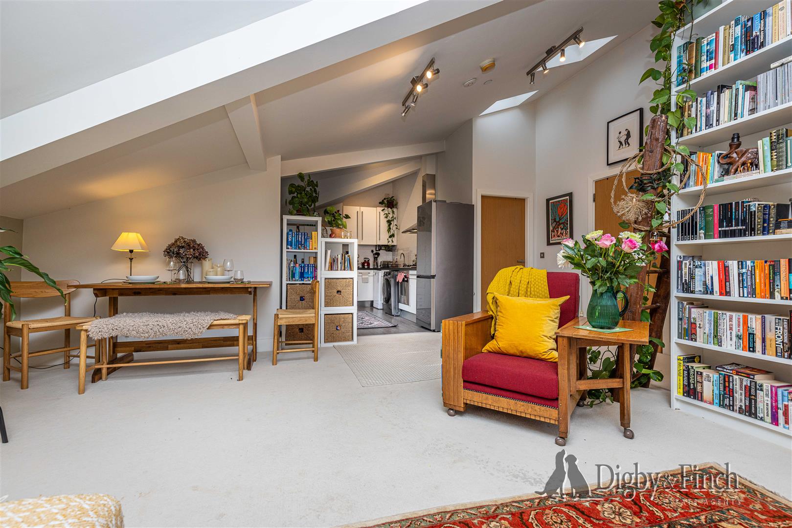Occupying the entire third floor, this fabulous and generously proportioned penthouse apartment offers open plan living at its finest. The property combines contemporary design with characterful architectural features, including vaulted ceilings and full-height windows that flood the living spaces with natural light. With two exceptionally spacious bedrooms, a family bathroom, and an en suite to the primary bedroom, this apartment provides an ideal balance of comfort and style. Accessed via both bedrooms is a vast carpeted eaves cupboard, spanning the entire length of the apartment, offering an immense amount of storage space—a rare and valuable feature for apartment living. Outside, a private balcony provides the perfect setting for al fresco dining or simply relaxing in the sunshine, while a designated off-street parking space adds to the convenience. Situated in a sought-after village location, the apartment lies within easy walking distance of local amenities, the recreation ground, and several welcoming pubs.