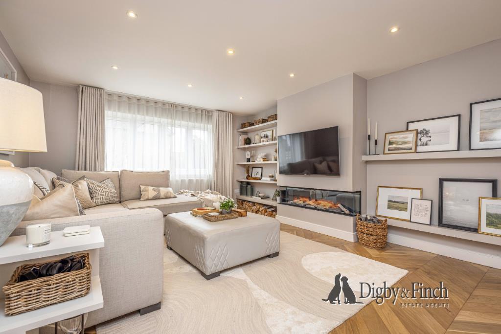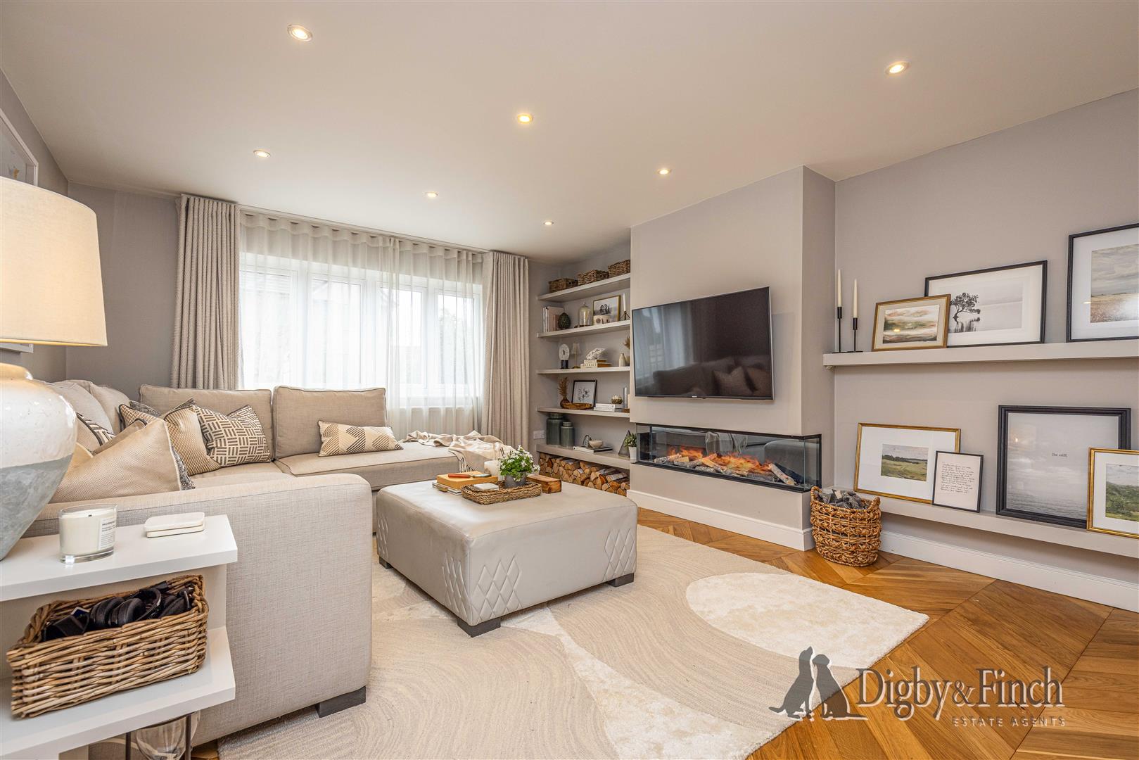 Positioned to the front of the property is the formal sitting room, a generously proportioned space centred around an electric log-effect fire with bespoke shelving to either side. A large window provides a pleasant outlook to the front.