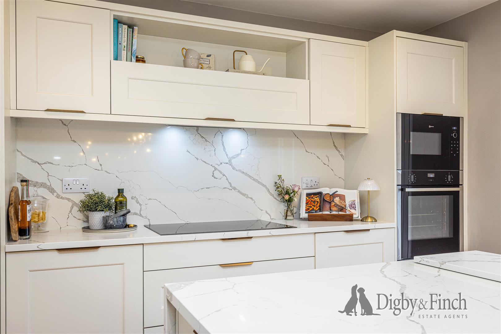 Built just five years ago and presented to the market for the very first time since its completion, this exceptional four-bedroom detached family home offers an outstanding blend of contemporary design and refined living. Thoughtfully conceived and impeccably styled throughout, the property showcases a high-quality specification with luxurious finishes at every turn, creating a home of both elegance and practicality. Of particular note is the stunning open plan living, dining kitchen forming the heart of the home, complemented by a separate formal sitting room and versatile accommodation across two floors. Externally, the property benefits from a generous driveway providing parking for three vehicles and a beautifully maintained rear garden, predominantly laid to lawn with a spacious patio area ideal for entertaining.