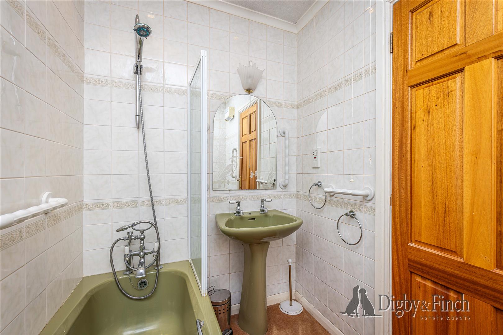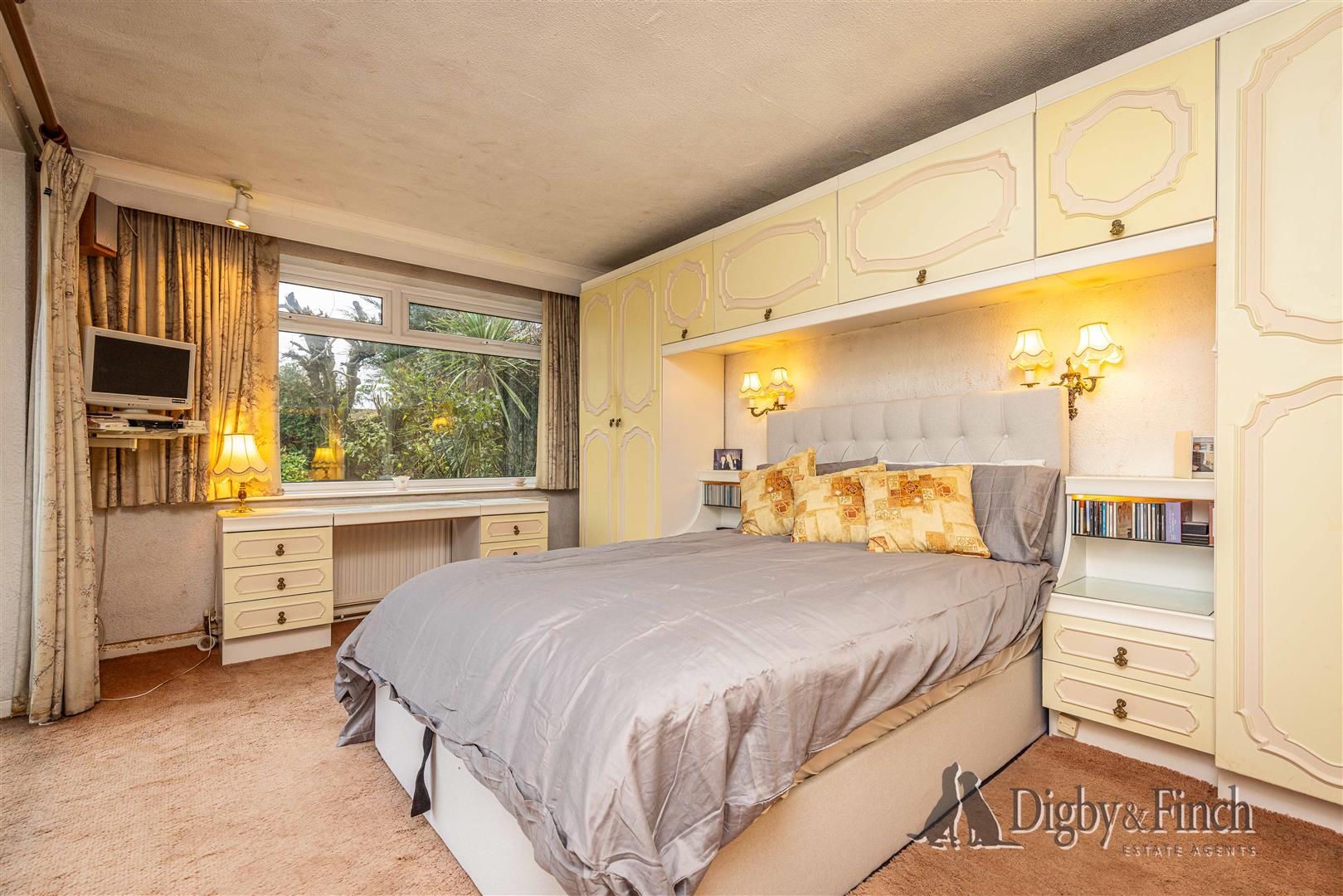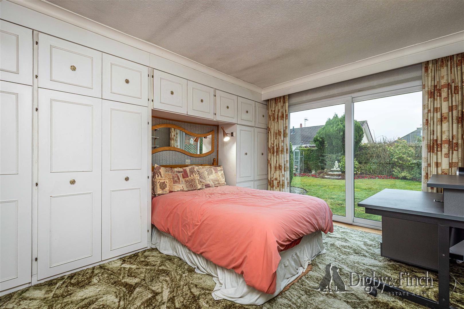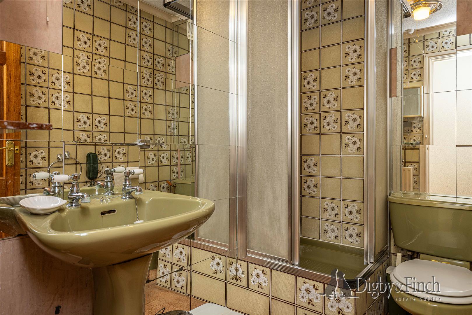 To the rear of the property are four well-proportioned double bedrooms, along with a bathroom and a separate shower room. The primary bedroom is a spacious room with fitted wardrobes and ample space for a king-size bed, with sliding glass doors opening directly onto the rear garden. Located adjacent to the primary bedroom is the shower room, offering excellent potential to be converted into an en suite. This room features tiling, a shower cubicle, a wash hand basin and a WC.