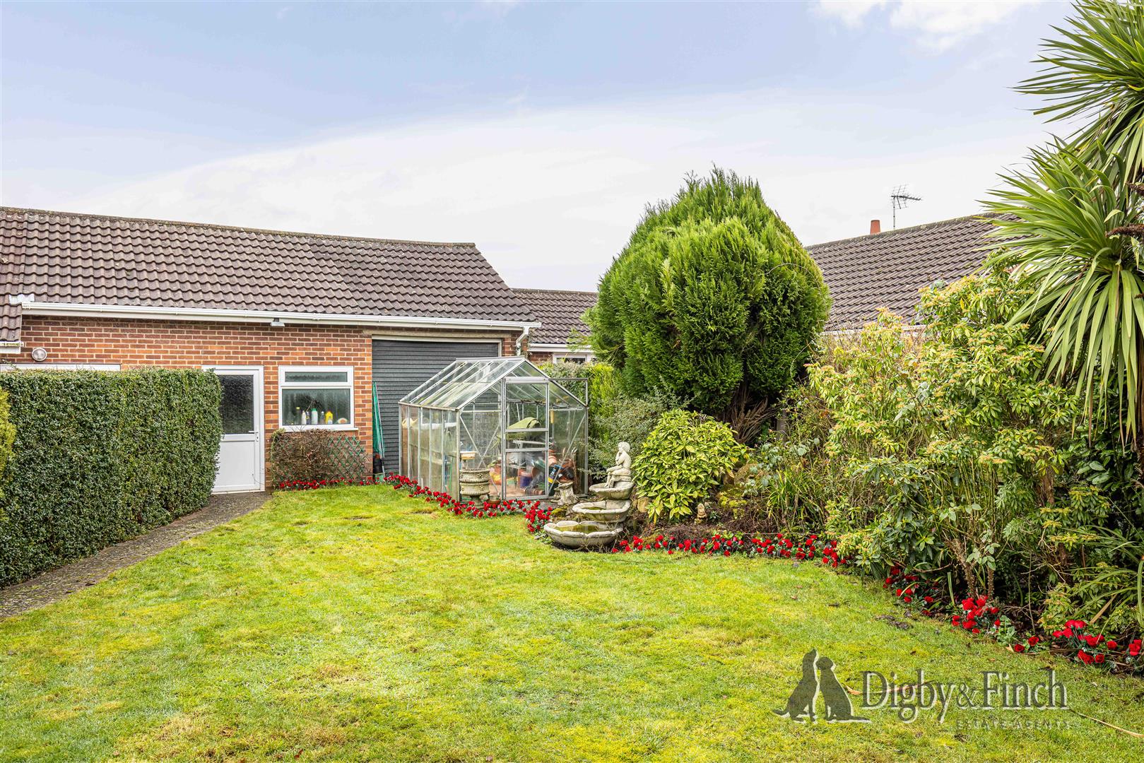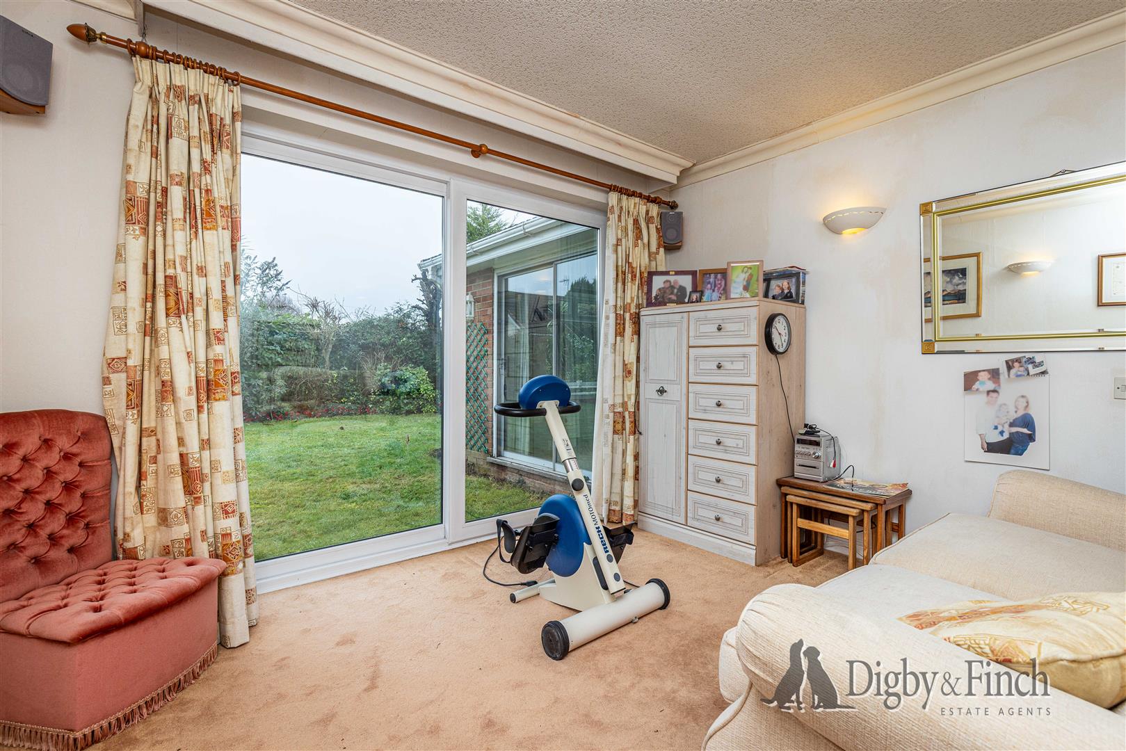 The front door is positioned to the left-hand side of the property and opens into a welcoming entrance hall with wood flooring, with a door directly opposite providing convenient access to the rear garden. This space opens into an internal hallway, clearly zoned by a change to carpeted flooring. The hallway runs centrally through the bungalow, providing access to the living accommodation arranged to the front of the property and the bedroom accommodation located to the rear. A useful cupboard within this area houses the boiler.