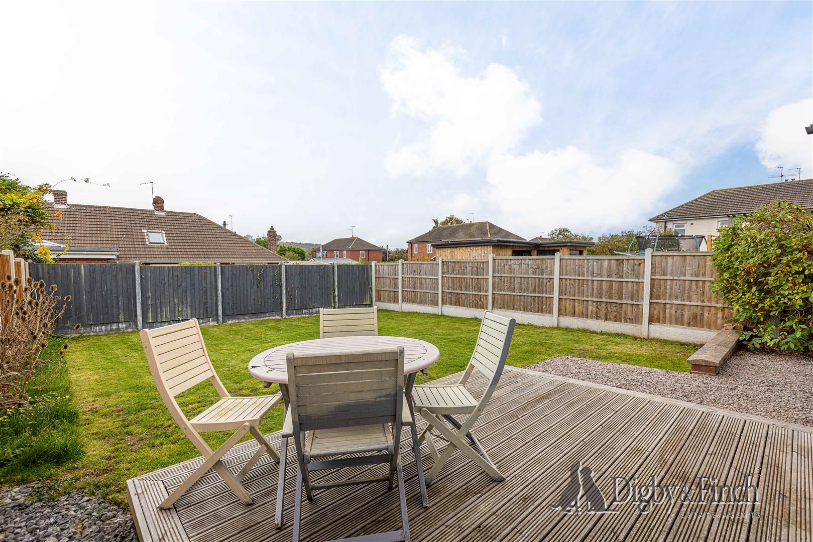 The rear garden is a particular highlight of this home. Enclosed by fencing for privacy, it is predominantly laid to lawn and enjoys a delightful south-facing aspect. A raised decked seating area, accessed directly from the dining room, provides a wonderful space for outdoor dining or entertaining. The garden also includes a rear door to the garage for convenience. With no overlooking properties, this space feels incredibly private and peaceful – the perfect retreat for family life.
