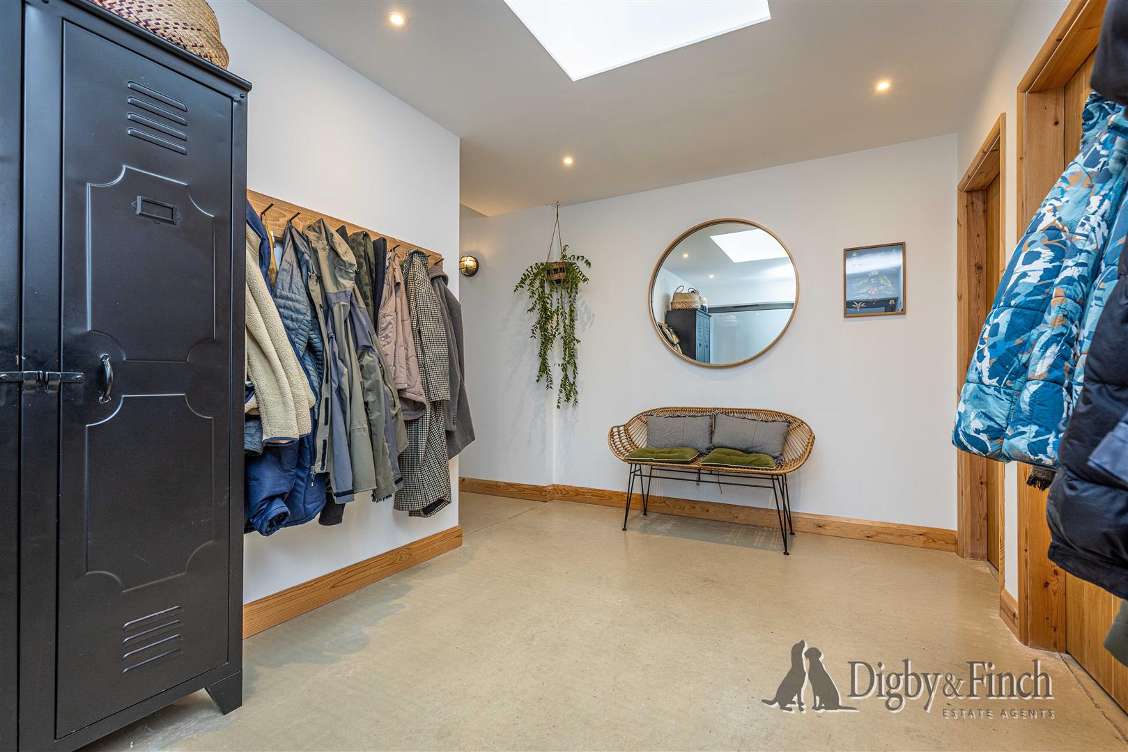 The front door opens into a striking and generously proportioned entrance hall which immediately sets the tone for the spacious accommodation within. This welcoming space benefits from underfloor heating which runs throughout the entirety of the extension, creating a warm and comfortable environment. From here, doors lead to a practical utility room fitted with a worktop and space beneath for two under-counter appliances, alongside a useful storage cupboard. Adjacent to this is a further room prepared to become a cloakroom, with plumbing and electrics already in place, allowing the incoming purchaser to complete the space with fittings of their choosing.