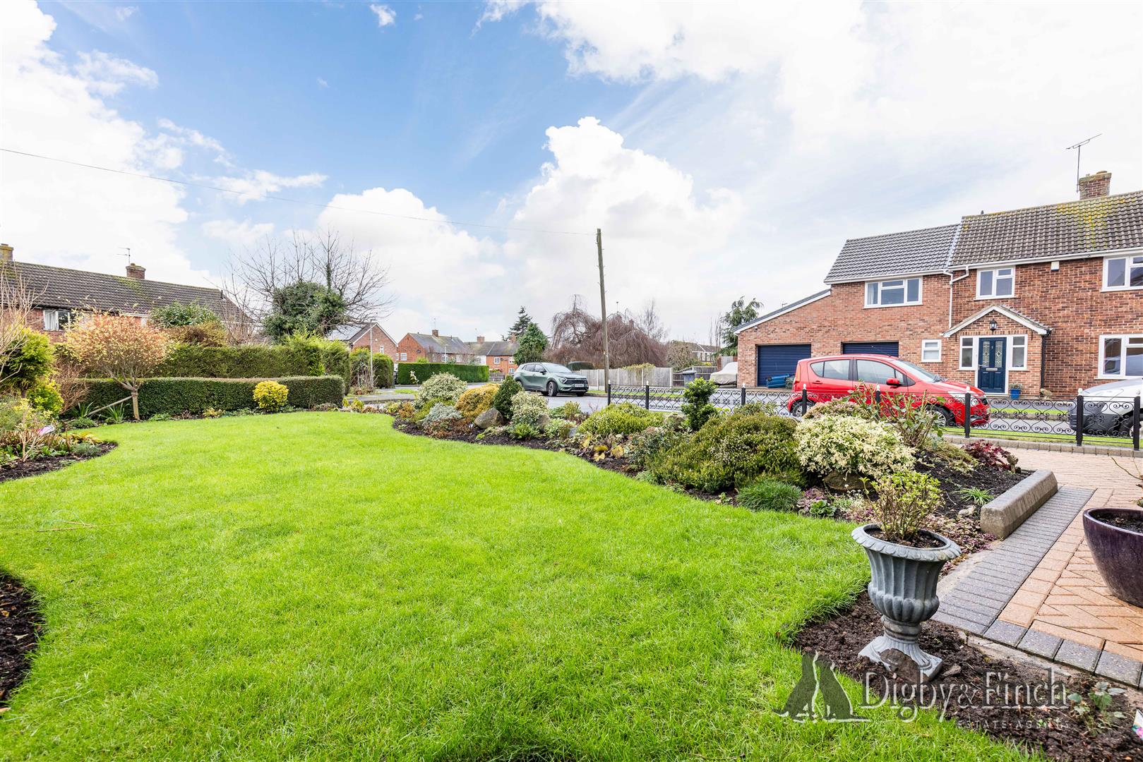 Set back from Yonge Close, the property enjoys a large front garden that has been meticulously landscaped, with mature winding flower and shrub borders surrounding a large lawn. To the left hand side a block paved tandem driveway with parking for multiple vehicles.
