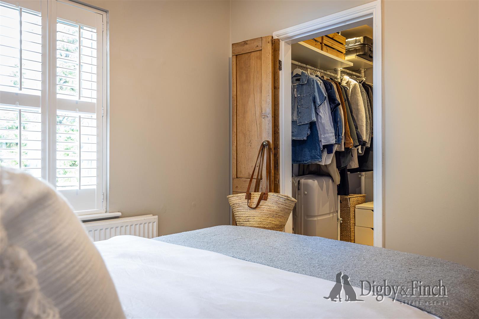 The primary bedroom, positioned at the front of the property, enjoys a lovely outlook over the village green and offers generous proportions. This light and airy double bedroom also benefits from a walk-in dressing room fitted with shelving and hanging rails, providing excellent storage.