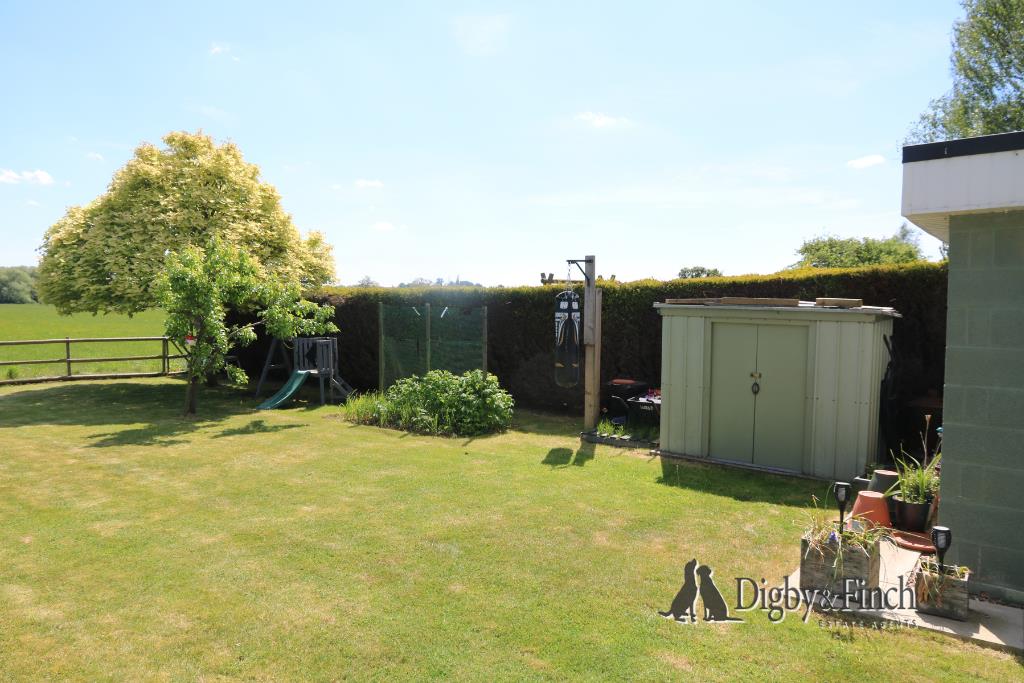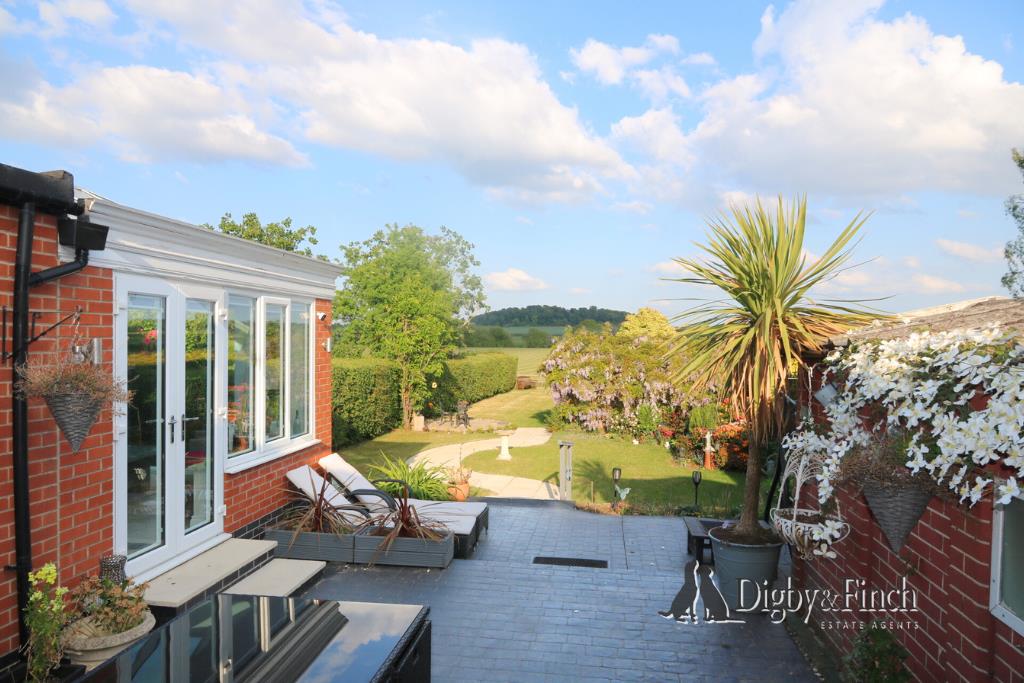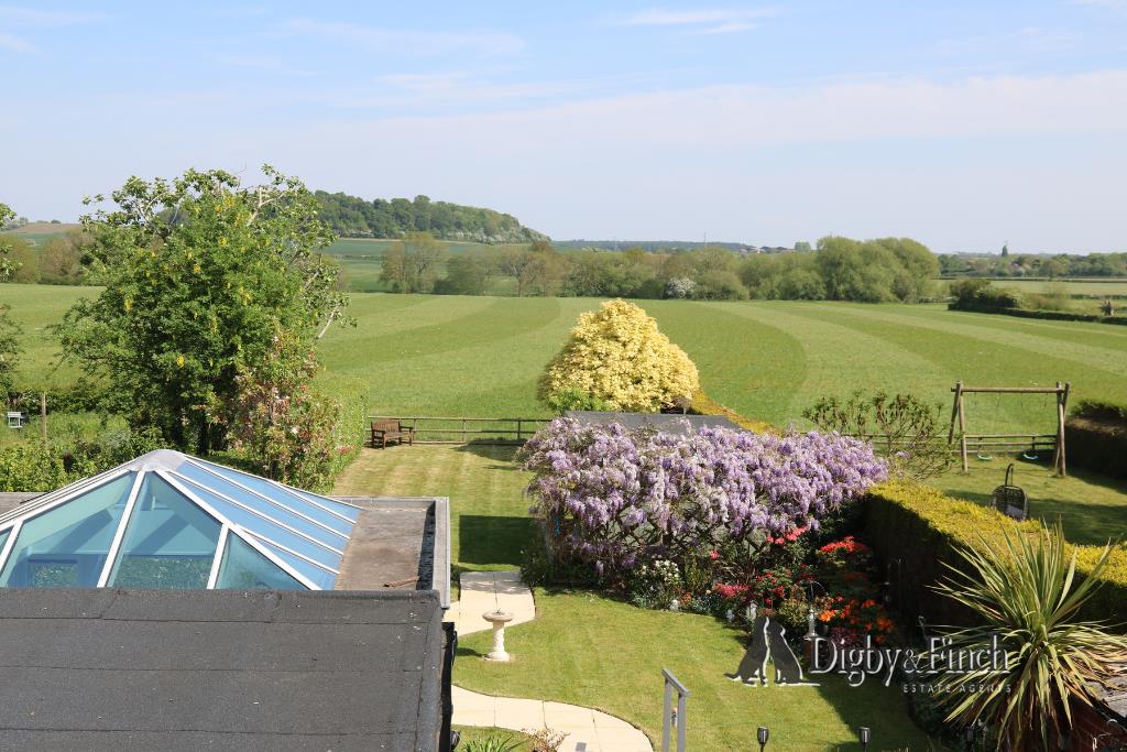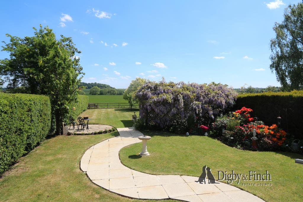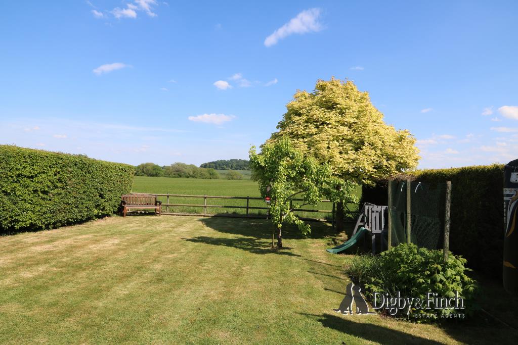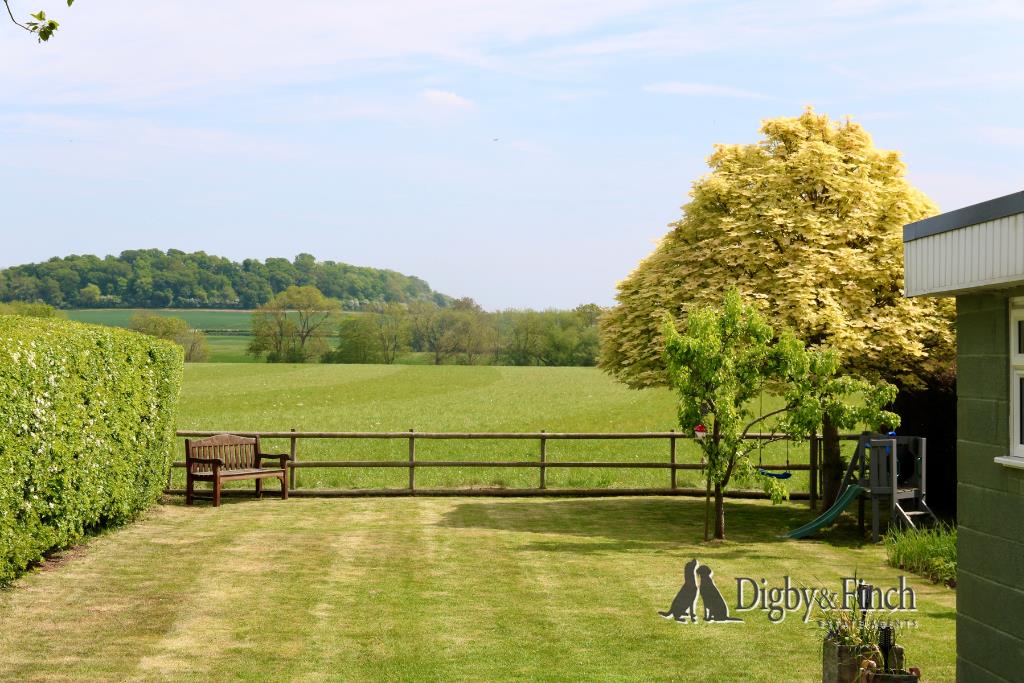 The remainder of the garden is predominantly laid to lawn and bordered in a way that preserves the open aspect, with a low fence at the rear allowing uninterrupted enjoyment of the stunning countryside views beyond.
