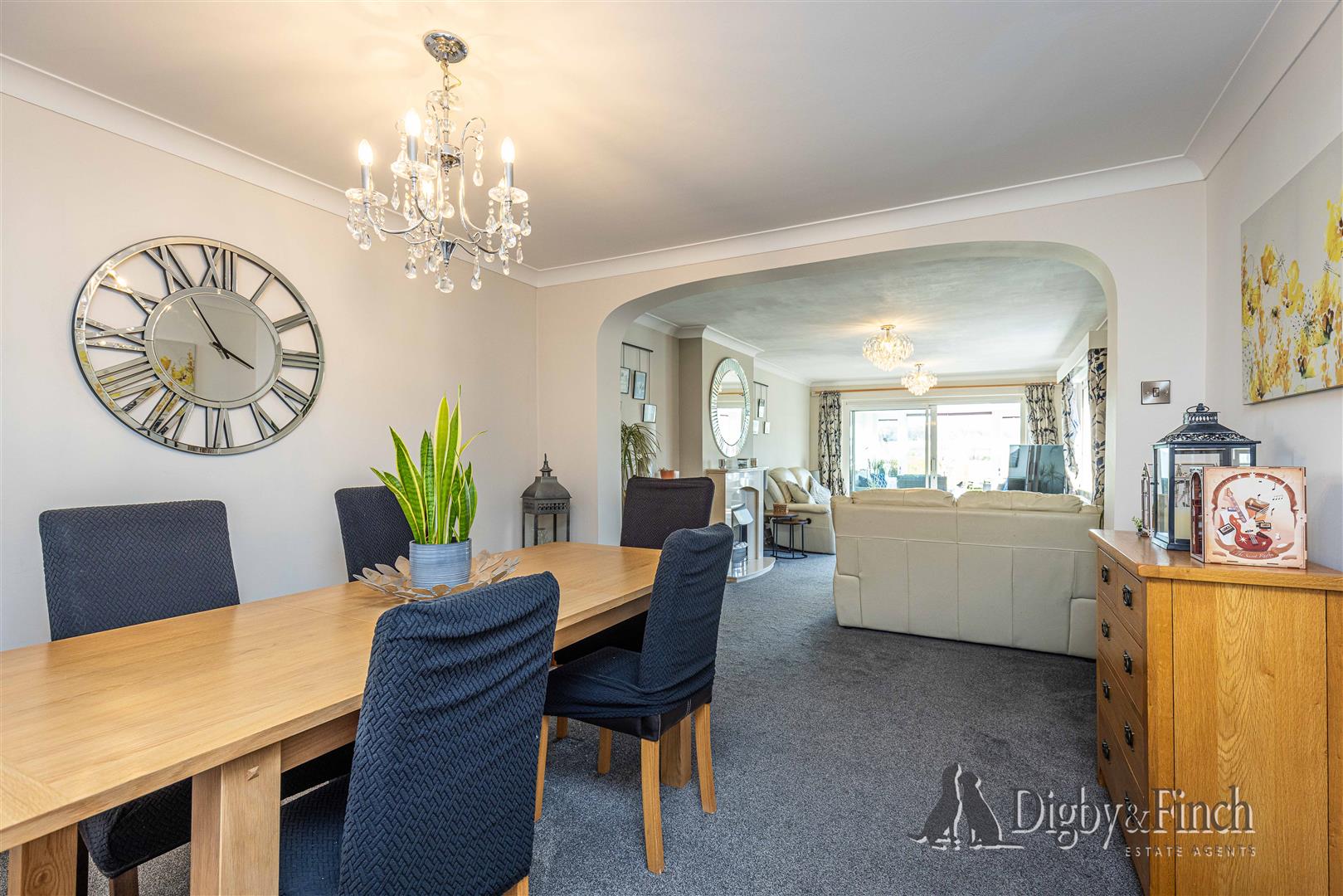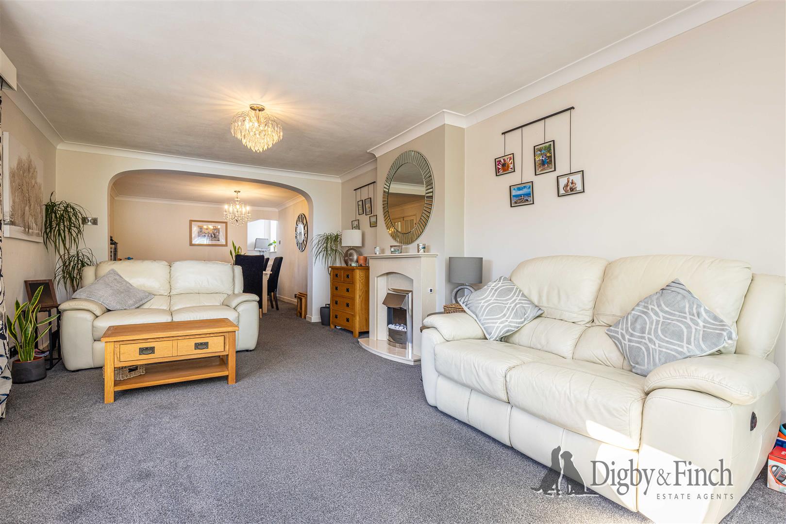 To the front of the property, a block paved driveway extends to both the front and side, providing ample off-street parking for at least four vehicles and leading to the single garage. A generous front lawn sits to the side, enhancing the property’s kerb appeal.