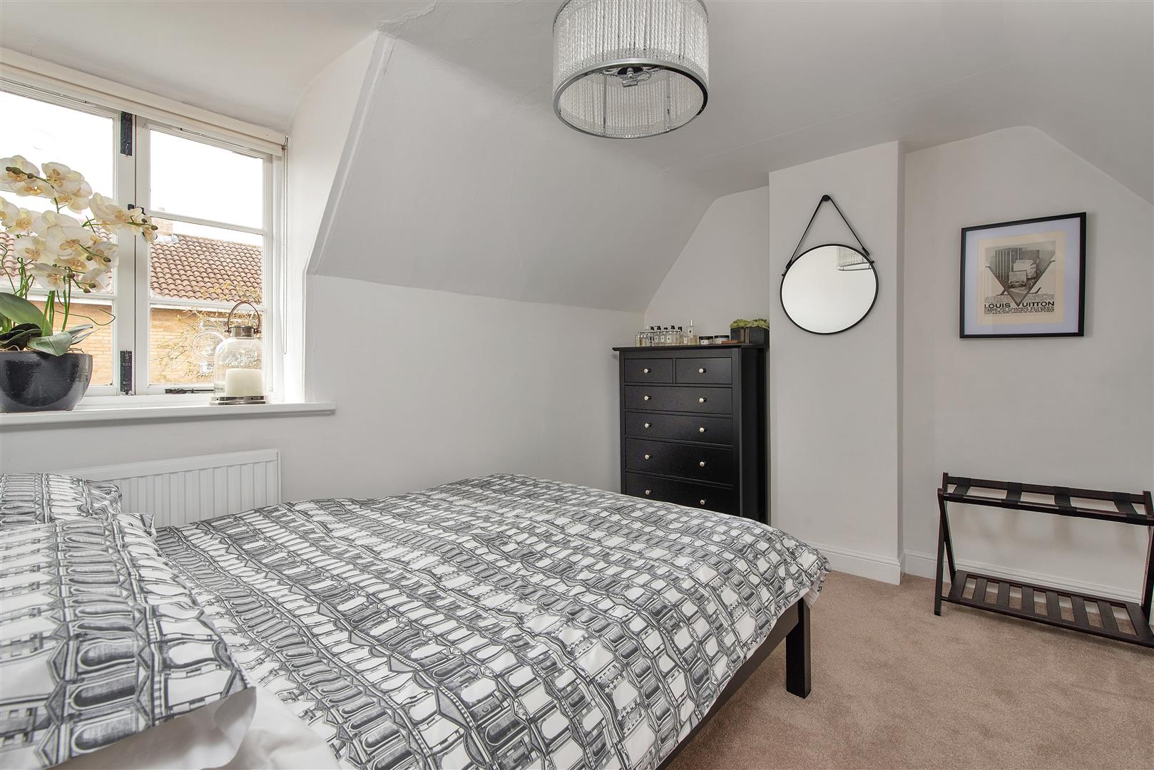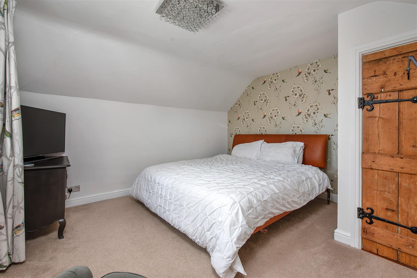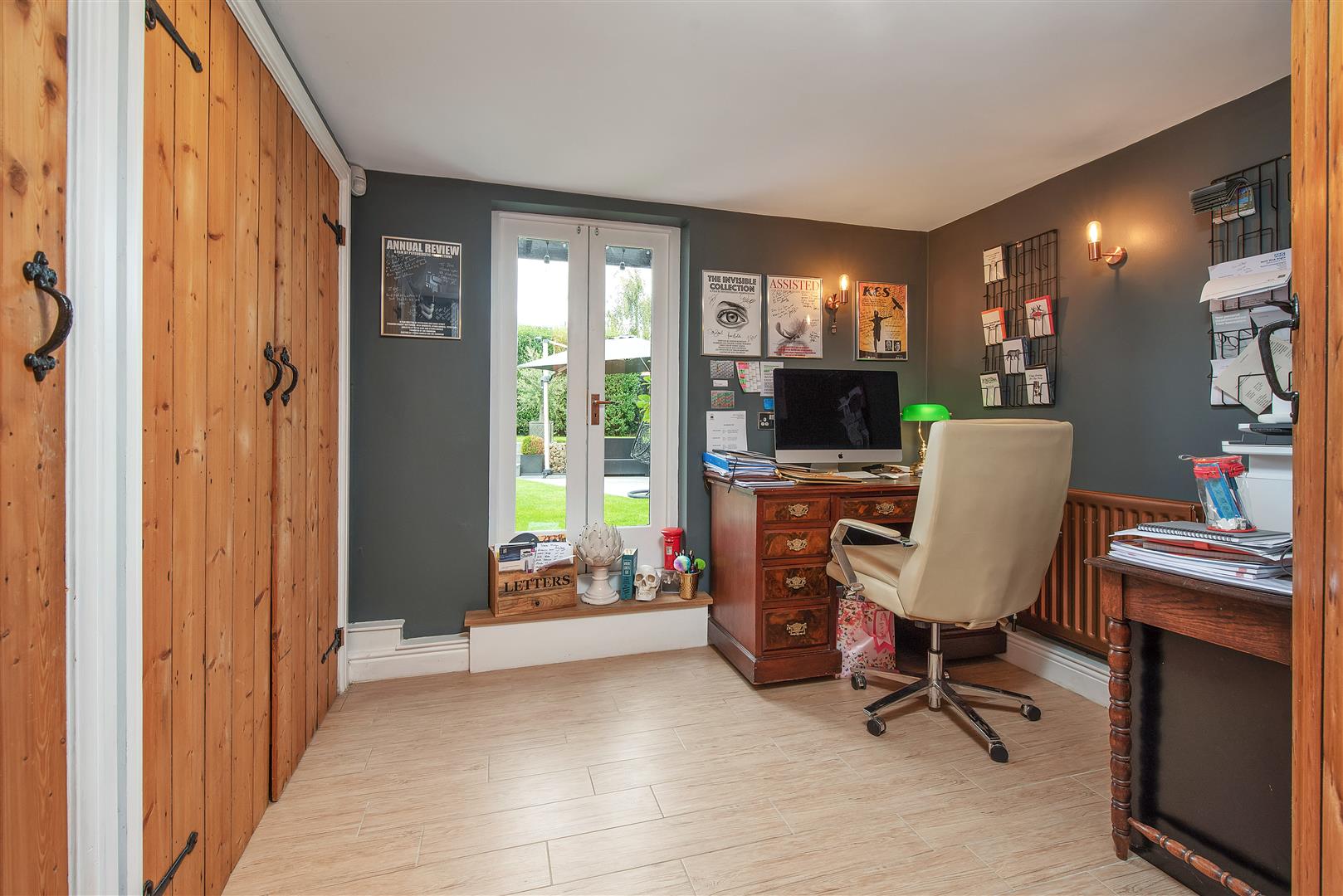 There is a useful study/snug just down the hallway with pretty French doors leading to the garden and very deep storage cupboards spanning the length of the room.