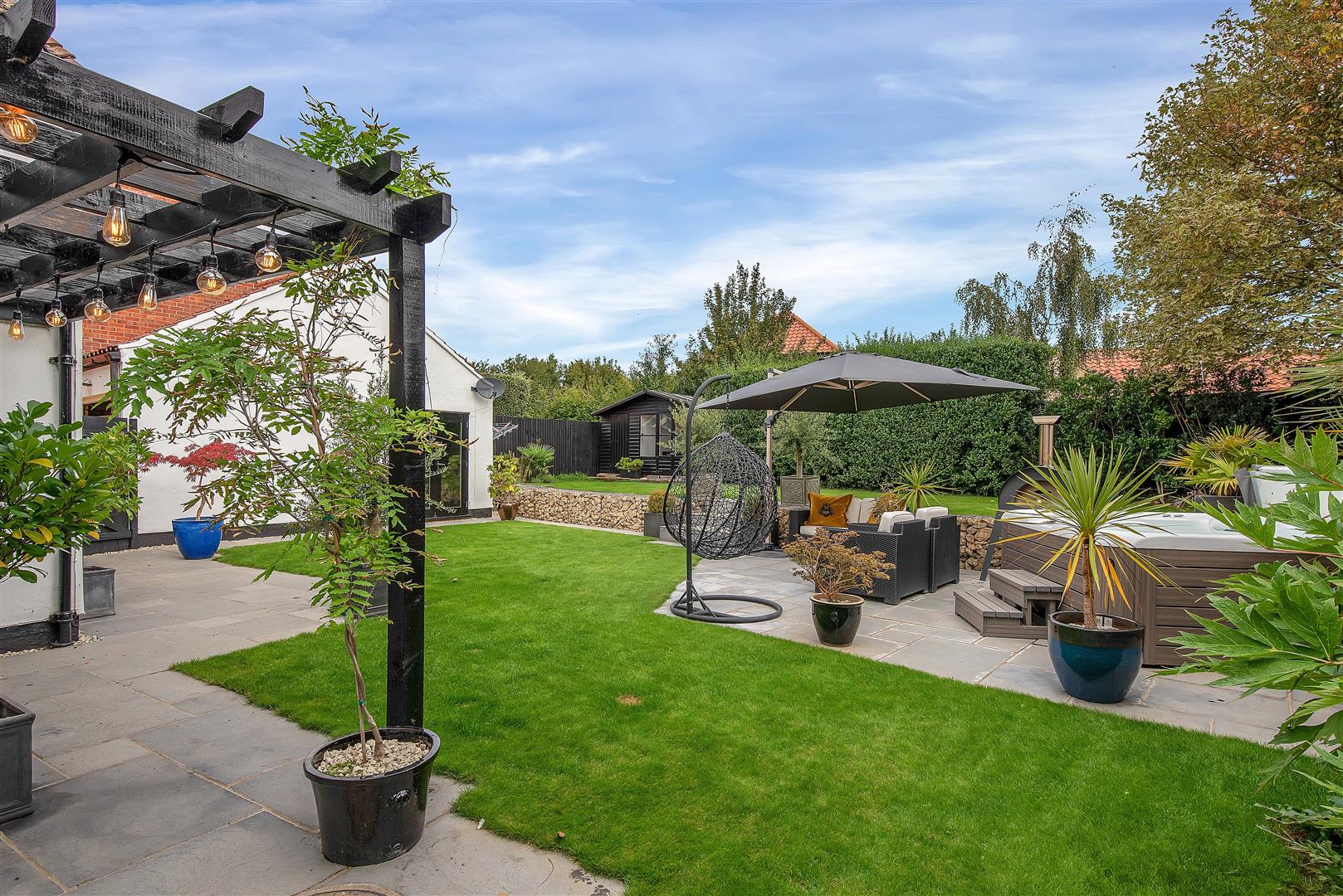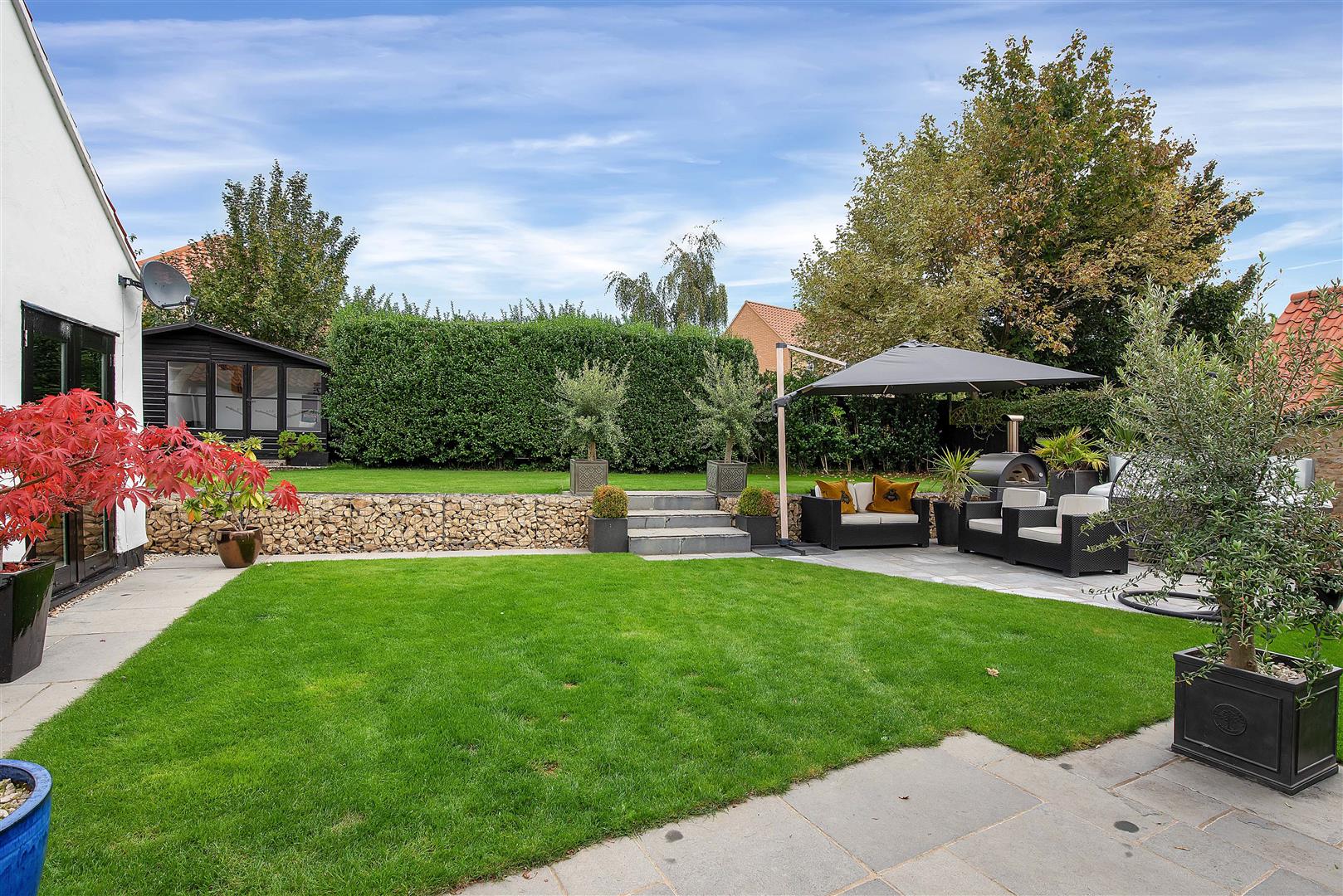 The fabulous rear garden has been fully landscaped and offers several different areas for outdoor entertaining and alfresco dining. The area is very private and offers a large summer house, and a garden store.