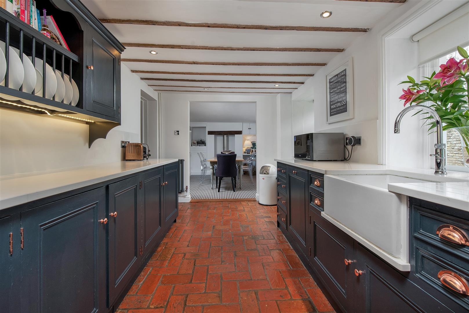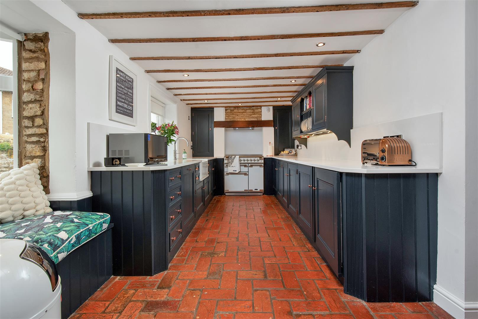 There are numerous period features throughout the kitchen such as as exposed timbers, polished brick flooring and a cosy window seat with storage beneath.