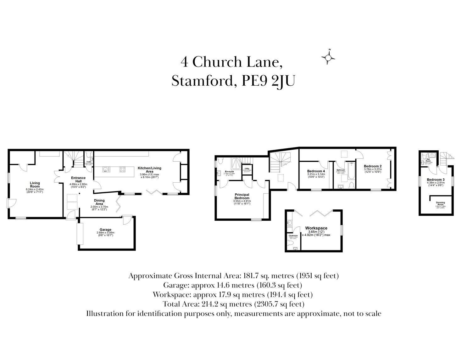 A further staircase rises to a charming fourth double bedroom, benefitting from a superb en suite shower room together with a walk-in wardrobe, offering an ideal guest suite or private bedroom space.
