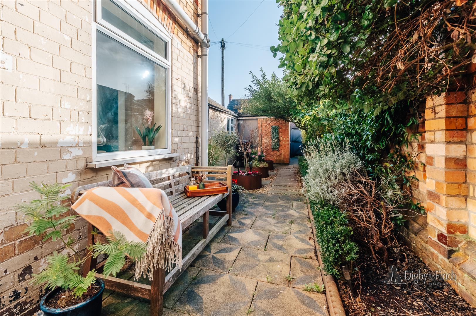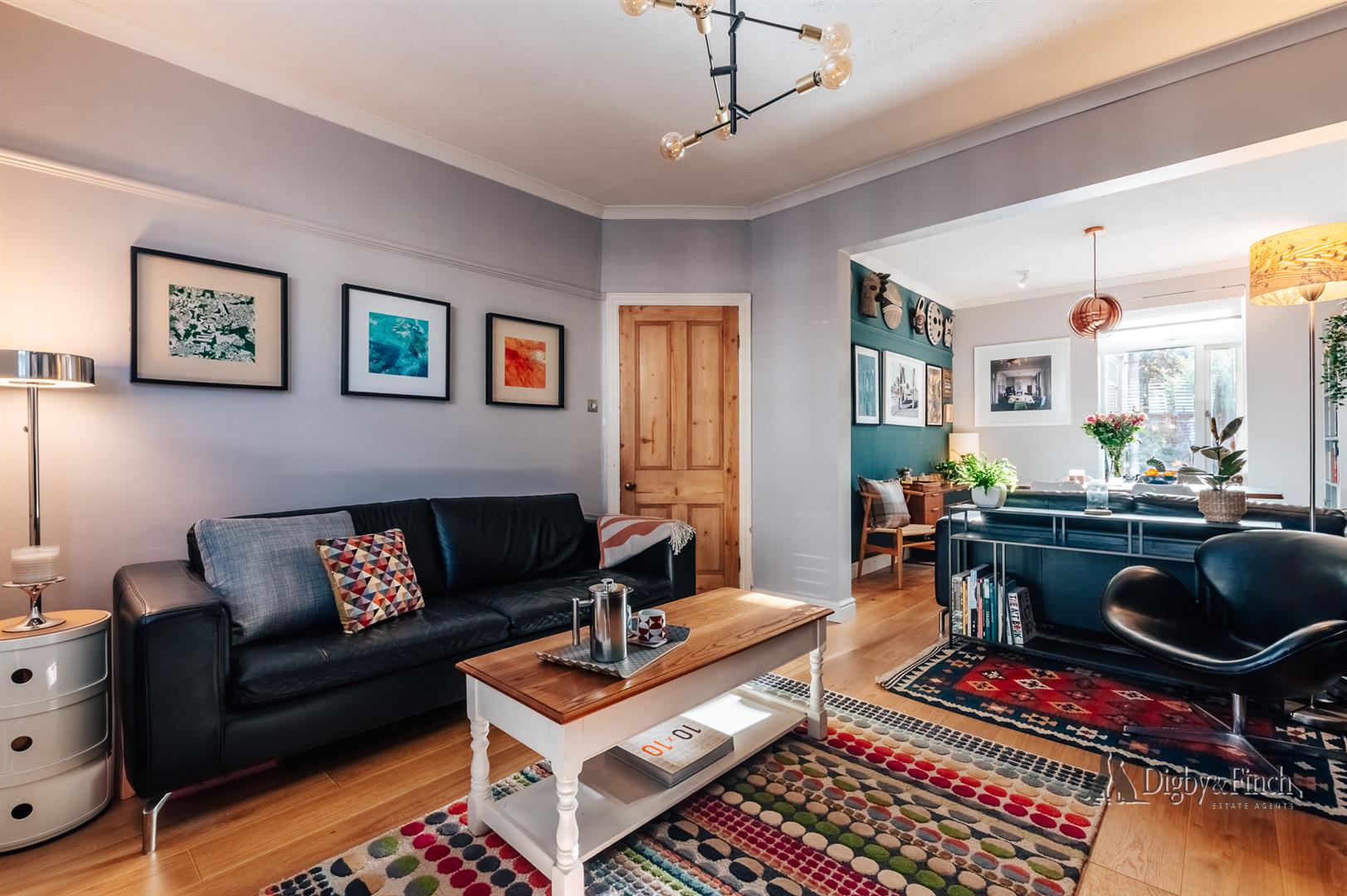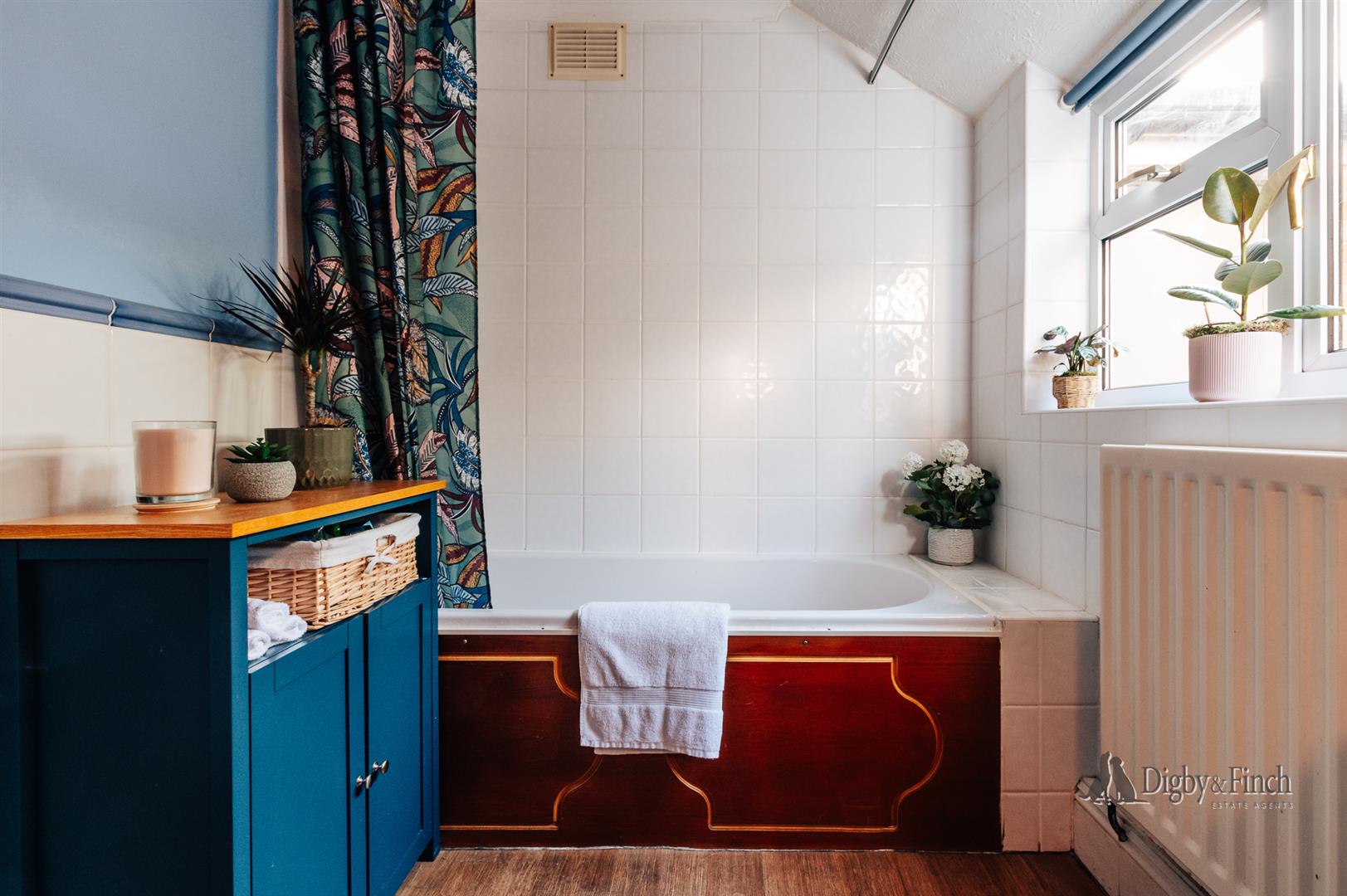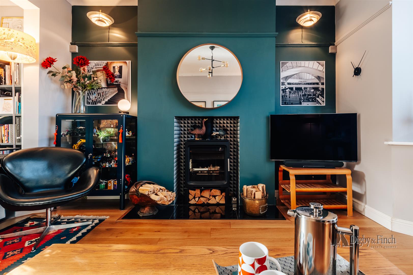 The property offers two inviting reception rooms, thoughtfully opened up to enhance natural light and create an impressive sense of space. The sitting room features a wood-burning stove with attractive contemporary tiling, providing a wonderful focal point, while the bay window fitted with plantation shutters adds both charm and practicality. The second reception room, currently used as a dining room enjoys a lovely outlook over the south-facing courtyard garden.